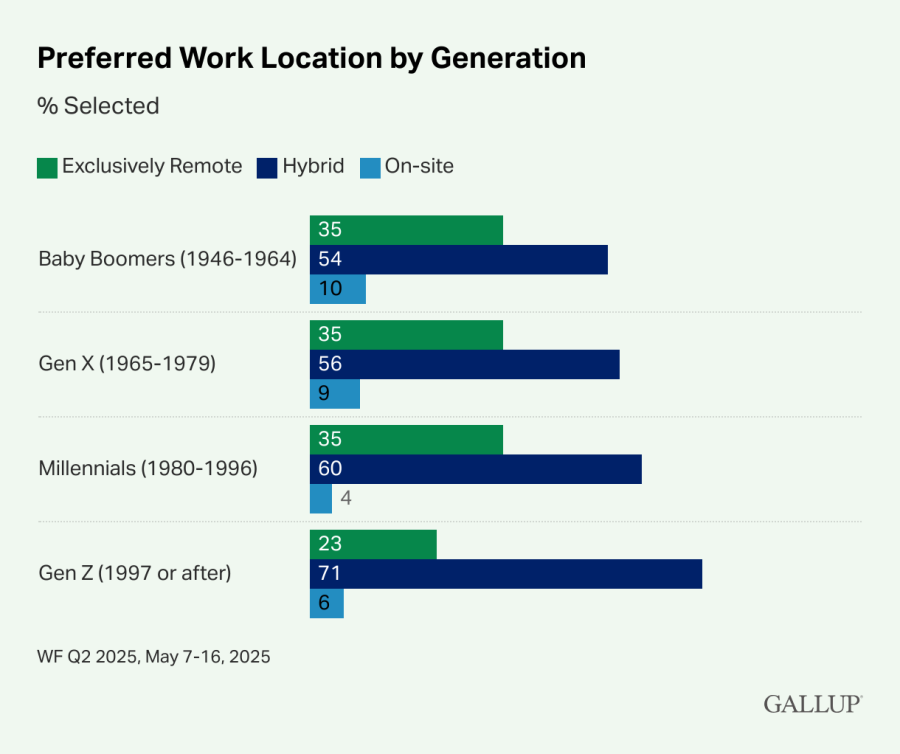 Data dari survei Gallup tahun 2025 justru menunjukkan hal yang berbeda. Hanya sekitar 23% Gen Z yang pekerjaannya bisa dilakukan secara remote benar-benar ingin bekerja sepenuhnya remote. Artinya, mayoritas dari mereka tetap ingin hadir ke kantor.
